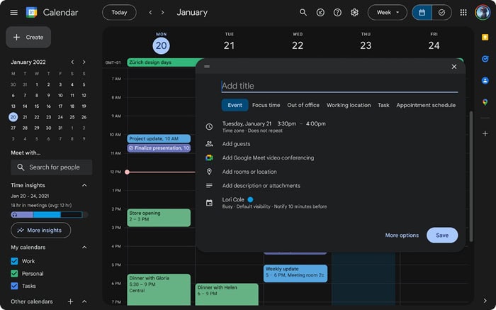 Thời điểm nào phù hợp để bật chế độ tối cho Google Calendar?