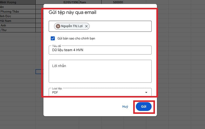 – Bước 4: Cuối cùng, bạn chỉ cần nhấn nút Gửi (Send).