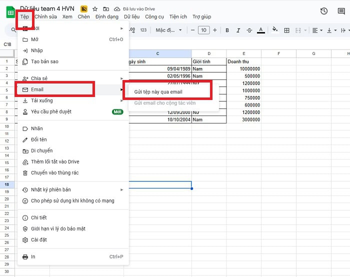 Cách 1: Chuyển trực tiếp từ menu Tệp (File) trong Google Sheets