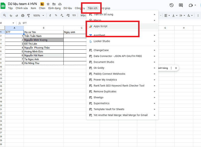 Cách 4: Sử dụng Google Apps Script để tự động hóa
