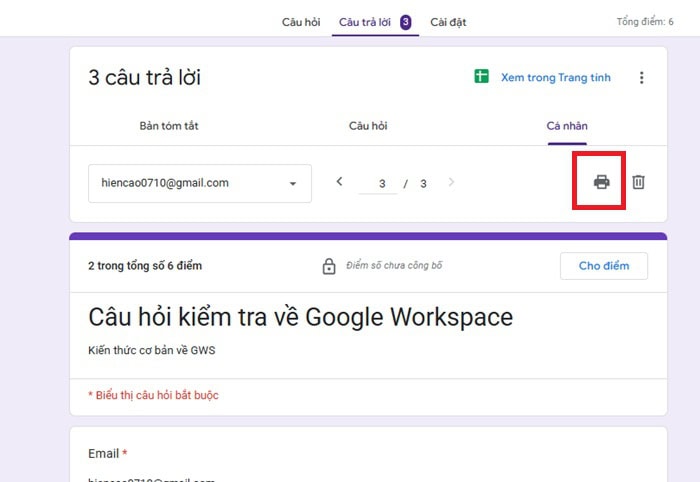*Lưu ý: Nếu bạn có hàng trăm phản hồi, việc nhấn in từng người sẽ rất mất thời gian. Trong trường hợp đó, bạn nên chuyển toàn bộ dữ liệu sang Google Sheets. Sau đó, bạn chuyển file Google bảng tính sang tài liệu PDF. Cách này giúp bạn có một file PDF dài chứa tất cả câu trả lời của mọi người một cách hệ thống và dễ quản lý hơn.