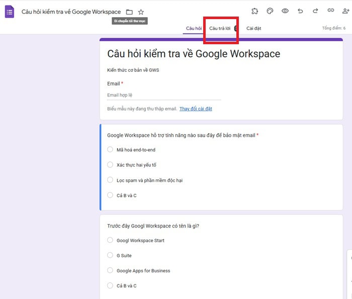– Bước 1: Đầu tiên, tại giao diện chỉnh sửa Form, bạn hãy nhấp vào tab Câu trả lời (Responses) ở phía trên cùng.