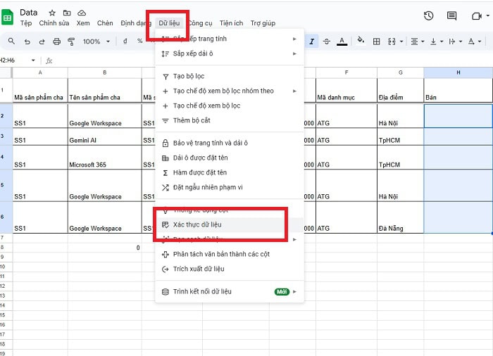 – Bước 2: Tiếp theo, bạn vào menu Dữ liệu (Data) >> chọn Xác thực dữ liệu (Data Validation).