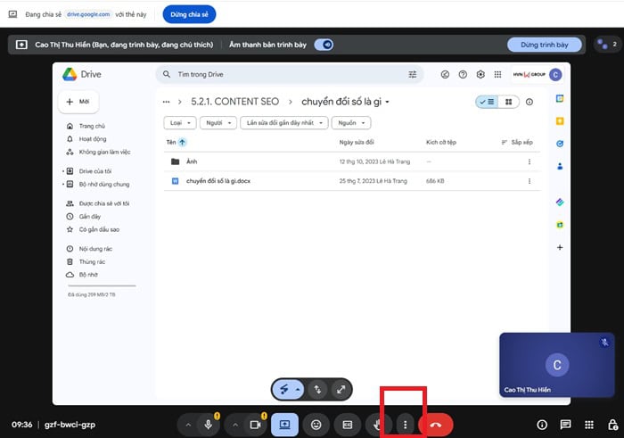 – Bước 1: Đầu tiên, bạn hãy tìm khung hình đang trình chiếu nội dung (thường có biểu tượng màn hình hoặc tên người trình bày).