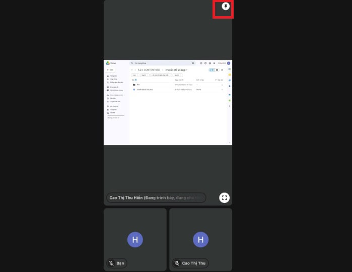 Khi có người đang thuyết trình, nội dung đó thường bị nhỏ đi do phải chia sẻ không gian với camera của những người khác. Để xem toàn màn hình nội dung này, bạn chỉ cần thực hiện theo các thao tác như sau: