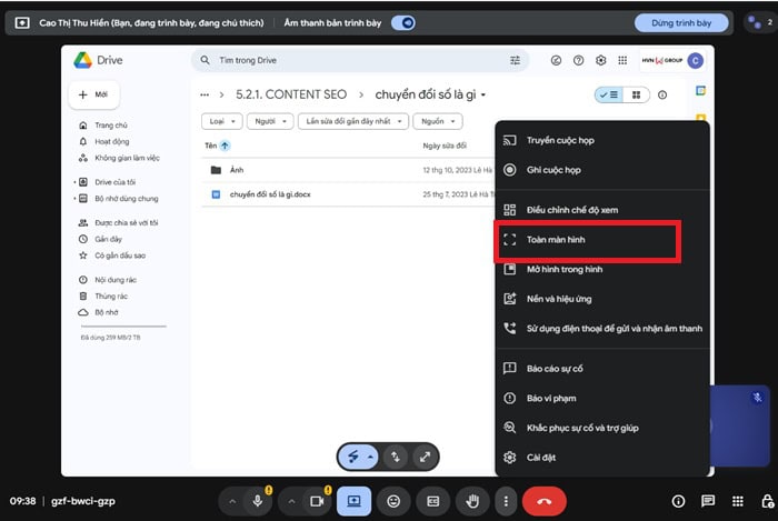 - Cuối cùng, mở full màn hình Google Meet phù hợp với nhiều tình huống