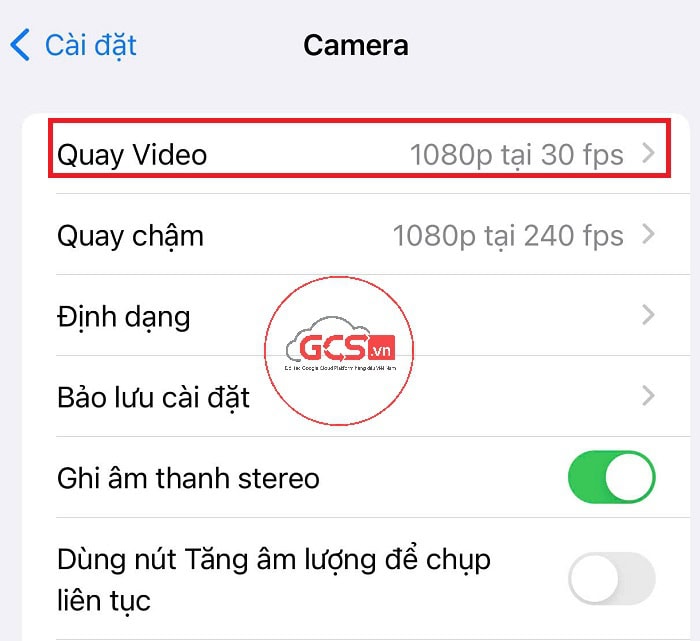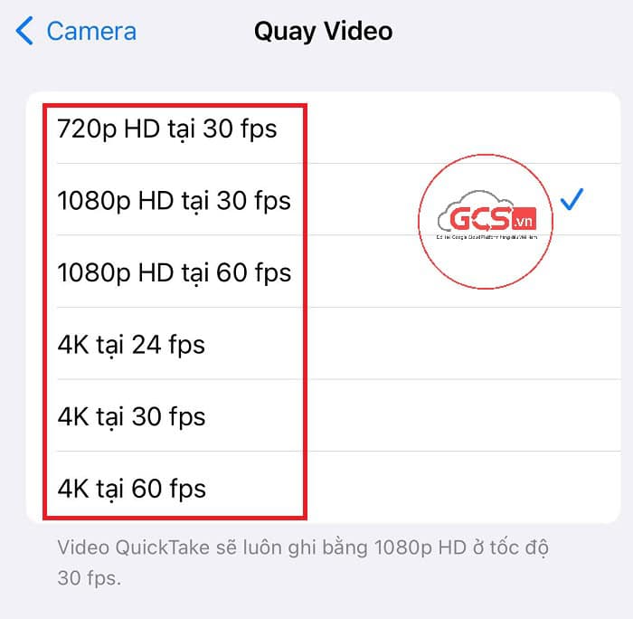 – Bước 4: Tại đây, bạn sẽ phải tùy chọn các mức chất lượng và dung lượng video theo từng dòng iPhone cụ thể.