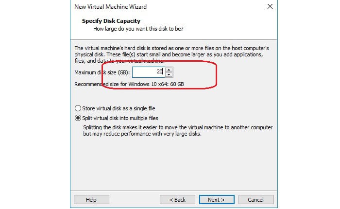 Bạn cần chọn dung lượng ổ cứng cho máy ảo: