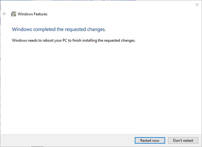 Sau khi bật Hyper-V, Windows sẽ yêu cầu bạn Restart máy tính để áp dụng các thay đổi. Đây là bước quan trọng để Hyper-V được kích hoạt đầy đủ trên hệ thống.