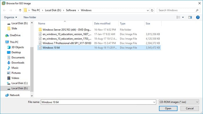 Sau đó, bạn cần duyệt đến file ISO Windows 10 mà bạn đã chuẩn bị