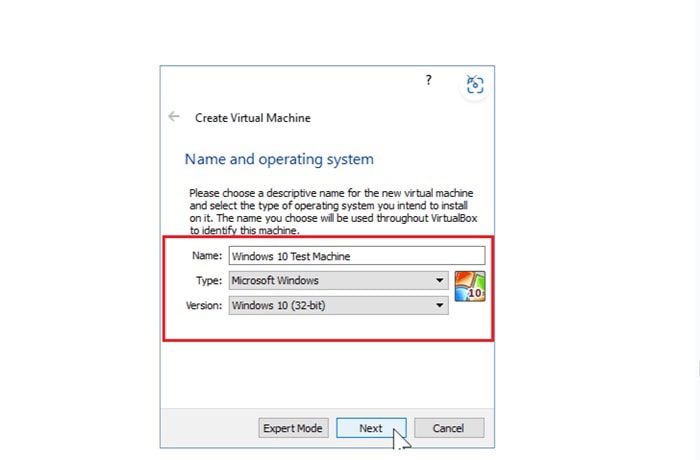 Bạn cần nhập tên máy ảo, ví dụ: Windows 10 VM.