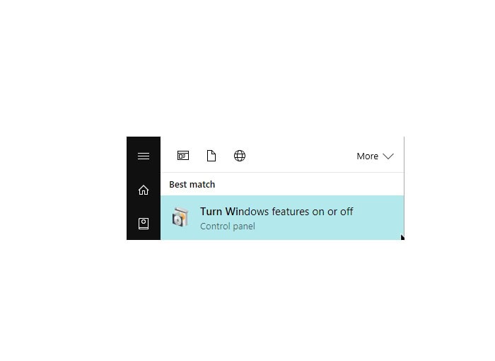 Trên Windows 10, nhấn Start và gõ từ khóa Turn Windows features on or off, sau đó chọn kết quả tìm kiếm tương ứng. Cửa sổ Windows Features sẽ hiện ra, nơi bạn có thể bật các tính năng Windows bổ sung.