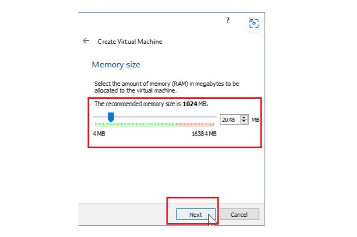 Bước này, bạn cần chọn lượng RAM cho máy ảo.
