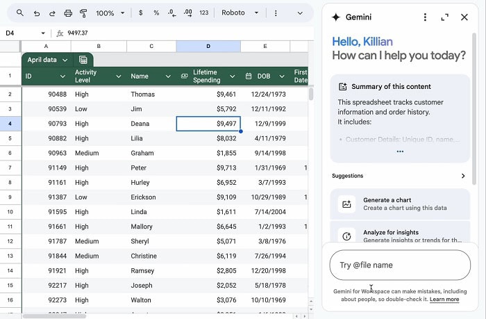 Sử dụng Gemini trong Google Trang tính để nhanh chóng thêm danh sách thả xuống, bảng tổng hợp, bộ lọc và nhiều hơn nữa
