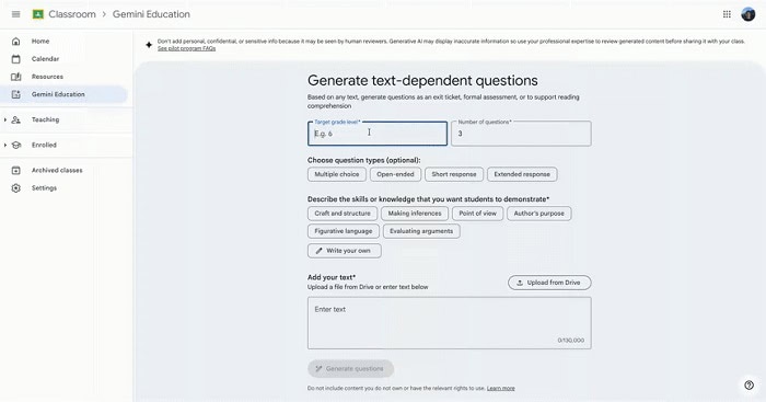 Google Classroom được bổ sung công cụ tạo câu hỏi dựa trên văn bản với sự hỗ trợ của Gemini
