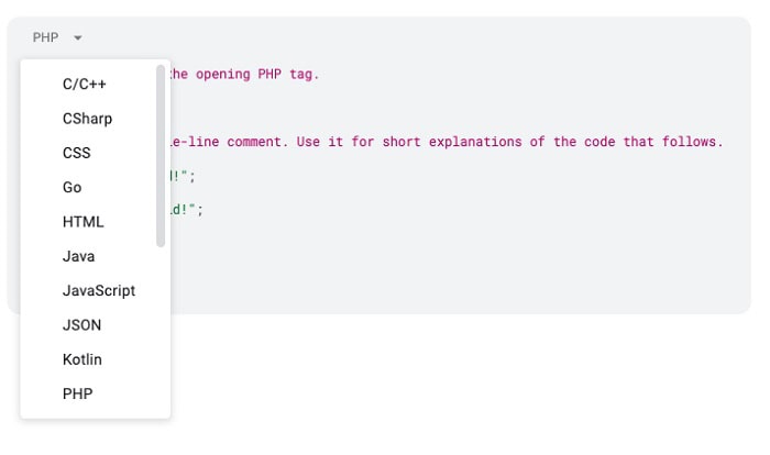 1 – Google Workspace đã bổ sung hỗ trợ khối mã cho nhiều ngôn ngữ lập trình trong Google Docs