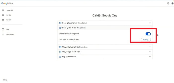 *Lưu ý: Sau khi bật, tất cả thành viên sẽ thấy dung lượng của mình tăng lên theo gói của bạn. Google sẽ ưu tiên dùng hết 15GB miễn phí của họ trước, sau đó mới trừ vào gói dùng chung.