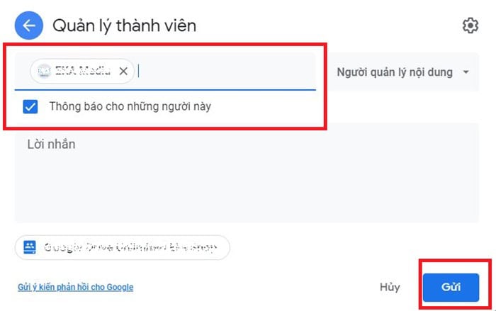 – Bước 3: Bạn thực hiện nhấn Gửi. Lúc này, người nhận sẽ có một email mời tham gia.