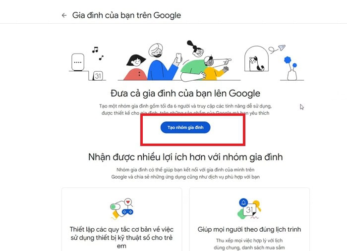 Tạo nhóm gia đình Google