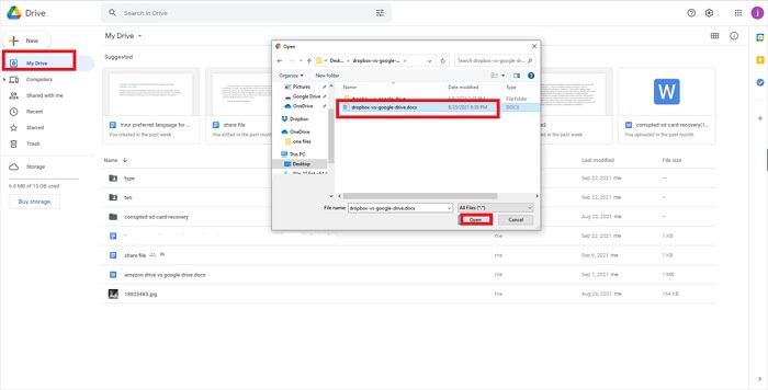 Bạn có thể chọn tải lên dữ liệu từ Drive của tôi (My Drive) hoặc Shared Drive nếu đang sử dụng Google Workspace. Sau đó, bạn chọn vào Mới >> chọn phần Tải lên tệp hoặc Tải lên thư mục lên Google Drive.