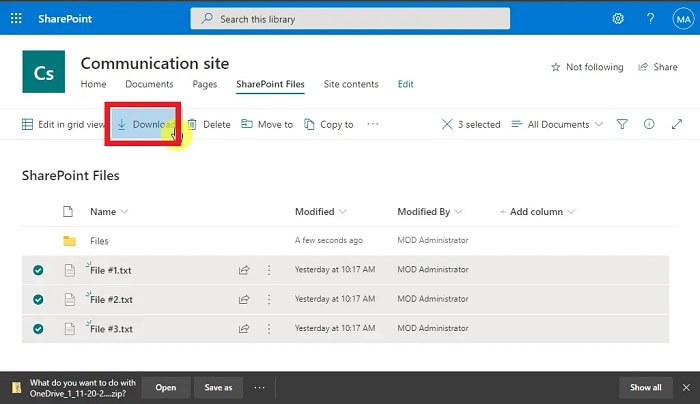 SharePoint thường nén các tệp và thư mục đã tải xuống thành một tệp .zip. Sau khi quá trình tải xuống đã được hoàn tất, hãy định vị tệp .zip này trong trình quản lý tệp trên máy tính của bạn (File Explorer trên Windows hoặc Finder trên Mac) và giải nén (extract) nội dung của nó vào một thư mục riêng biệt.
