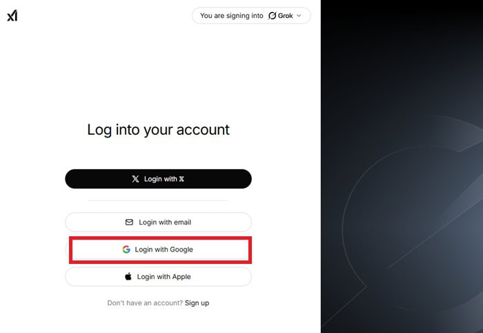 Tiếp theo, bạn truy cập vào nền tảng Grok AI và đăng nhập tài khoản Google của mình.
