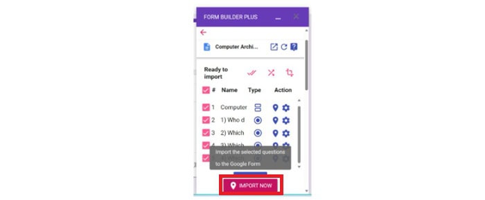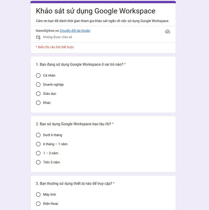 Sau đó, bài kiểm tra sẽ được chuyển từ Google Docs sang Google Forms.