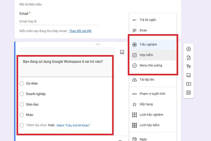 – Bước 3: Cuối cùng, bạn chỉ cần chọn loại câu hỏi phù hợp là hoàn tất.