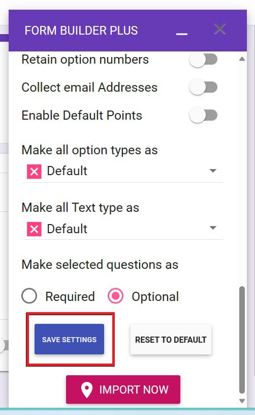 Bạn chỉ cần nhấn vào nút Lưu cài đặt để ghi nhớ các thiết lập và nhấp vào nút Nhập.