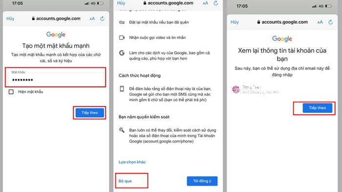 + Nếu không thấy nút Bỏ qua, bạn có thể để trống trường số điện thoại và nhấn Tiếp theo.
