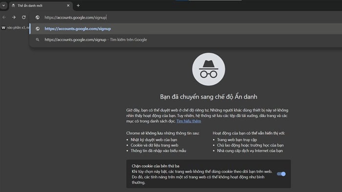 *Lưu ý: Việc sử dụng chế độ ẩn danh giúp trình duyệt không lưu cookie cũ, hạn chế việc Google nhận diện thiết bị đã từng tạo nhiều tài khoản trước đó.