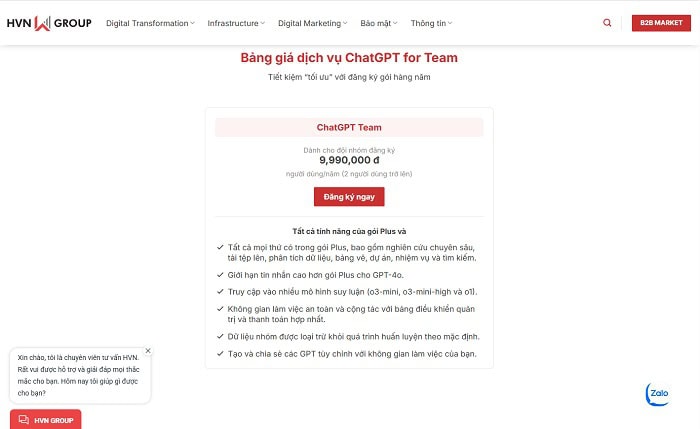 Ngoài ra, ChatGPT Business còn có chính sách giảm giá cho tổ chức phi lợi nhuận hoặc hợp đồng dài hạn. Doanh nghiệp có thể liên hệ trực tiếp với OpenAI hoặc đổi tác phân phối như GCS Việt Nam để nhận được báo giá cụ thể hơn LIÊN HỆ TẠI ĐÂY.