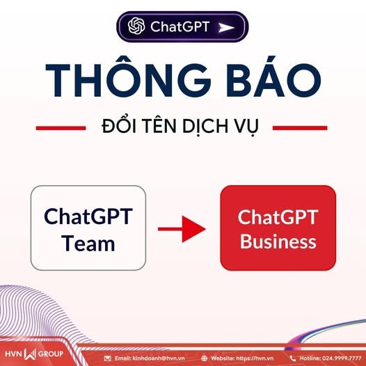 OpenAI đã đưa ra thông báo chính thức rằng từ ngày 29 tháng 8 năm 2025, ChatGPT Team đổi tên mới thành ChatGPT Business. Điều này đồng nghĩa với việc tất cả người dùng đang sử dụng gói Team trước đây sẽ thấy tên gói mới được hiển thị trong tài khoản, hóa đơn, cũng như tài liệu liên quan đến dịch vụ.