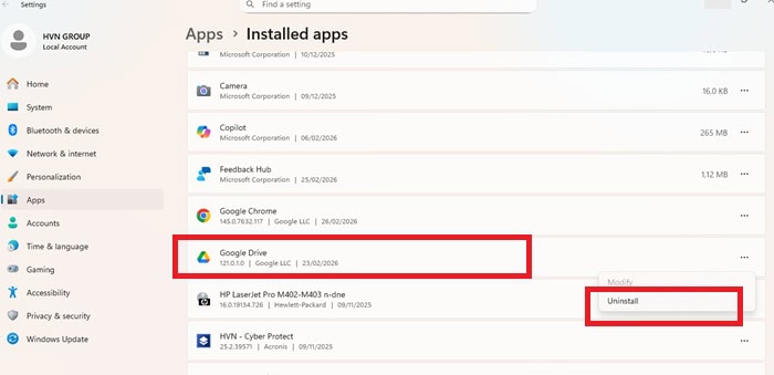Cách 2: Gỡ cài đặt Google Drive for Desktop khỏi máy tính
