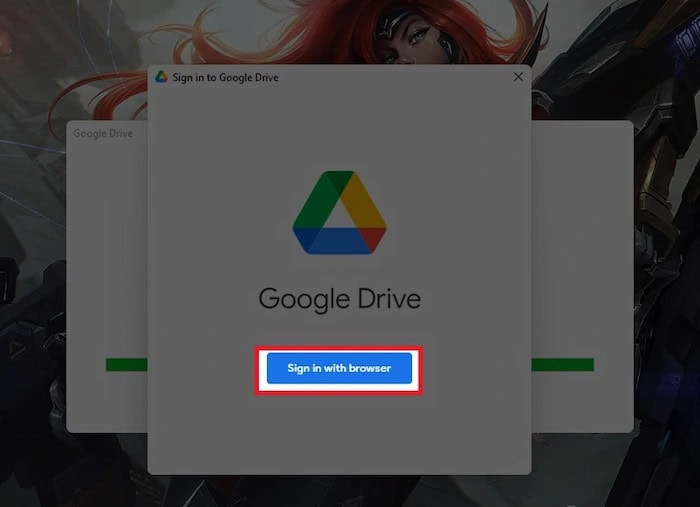 Sau khi cài đặt xong, bạn hãy mở ứng dụng Google Drive trên máy tính và nhấn Sign in with browser.