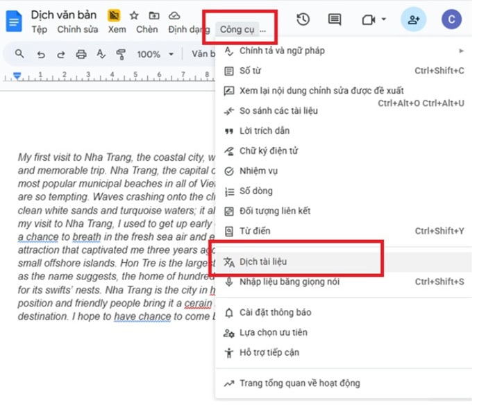 Cách dùng Google Docs để dịch toàn bộ tài liệu