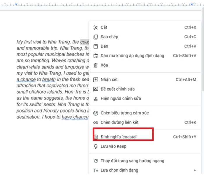 – Bước 2: Sau đó, bạn hãy nhấp chuột phải và chọn Định nghĩa (Define)