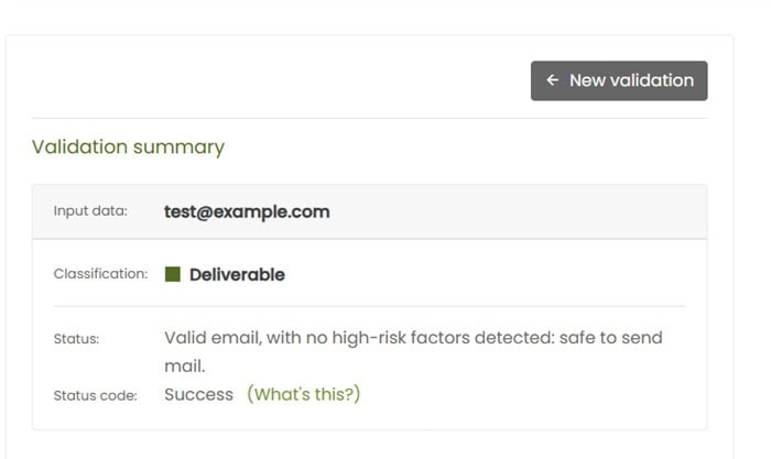 - Valid / OK: Email tồn tại và đang hoạt động.