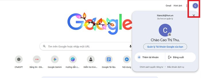 Nếu bạn đã từng đăng nhập để đồng bộ dữ liệu, hãy nhìn vào góc trên cùng bên phải cửa sổ trình duyệt. Thường sẽ có một hình tròn chứa ảnh đại diện hoặc chữ cái đầu tiên tên bạn. Bạn chỉ cần nhấp vào đó, địa chỉ email đầy đủ sẽ hiện ra ngay bên dưới tên.