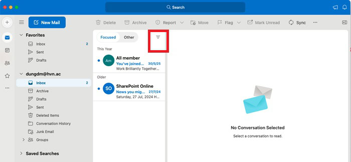 Đầu tiên, bạn mở ứng dụng Mail hoặc Outlook >> chọn Maill trên thanh menu dấu gạch ba ngang
