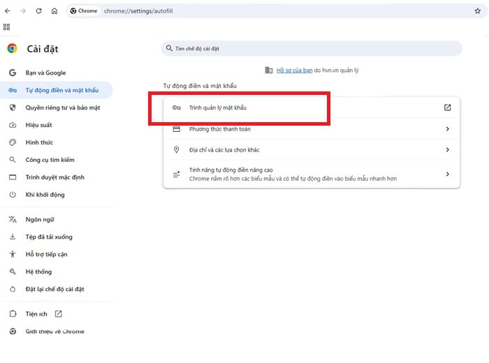– Bước 2: Tại thanh tìm kiếm trong Cài đặt, bạn hãy gõ chữ Mật khẩu (Password) và chọn Trình quản lý mật khẩu.