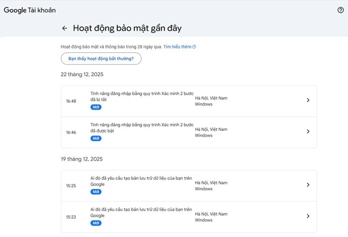 Bạn nên thường xuyên vào mục Bảo mật trong cài đặt tài khoản để xem danh sách “Các thiết bị của bạn”. Nếu thấy một thiết bị lạ (ví dụ bạn đang ở Việt Nam nhưng có thiết bị đăng nhập từ Mỹ), hãy ngay lập tức chọn Đăng xuất khỏi thiết bị đó và đổi mật khẩu.