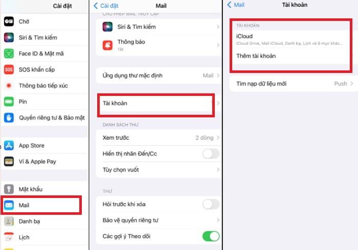 Apple quản lý email thông qua mục Tài khoản. Bạn vào Cài đặt (Setting) >> cuộn xuống chọn Mail >> chọn Tài khoản (Accounts).