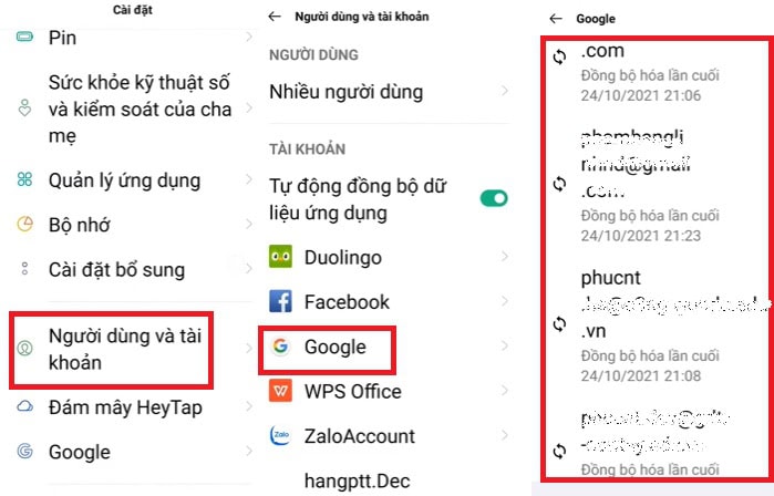 Bạn vào ứng dụng Cài đặt (Setting) >> chọn cuộn xuống tìm mục Người dùng và Tài khoản >> chọn Google. Ngay dòng đầu tiên bên dưới ảnh đại diện là địa chỉ email chính.