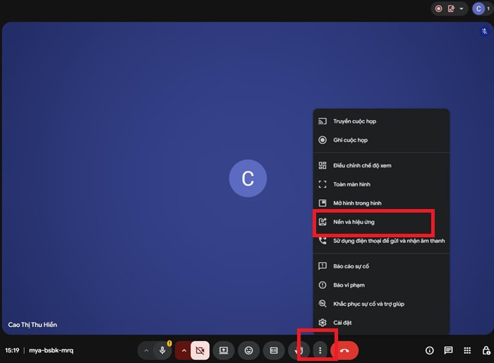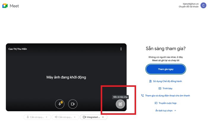Cách truy cập kho hiệu ứng trực tiếp trên Google Meet