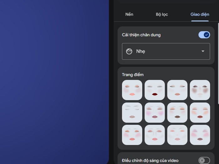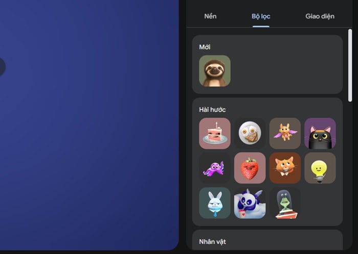Cách sử dụng filter trực tiếp bằng tính năng có sẵn của Google Meet