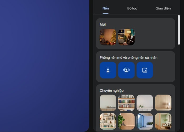 Tab này giúp việc thay đổi không gian họp trở nên chân thực và chuyên nghiệp hơn bao giờ hết.