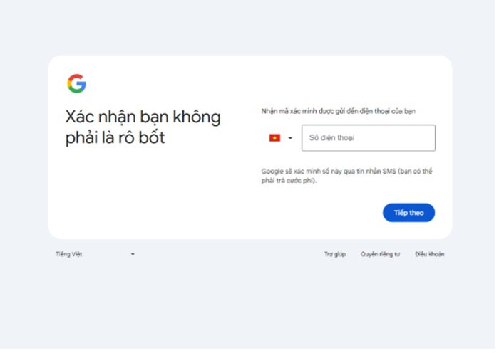 – Bước 4: Google yêu cầu xác minh số điện thoại để tăng cường bảo mật, khôi phục tài khoản khi quên mật khẩu. Bạn sẽ nhận được mã xác minh SMS để nhập vào hệ thống. Sau khi hoàn tất, bạn đồng ý với Điều khoản dịch vụ của Google.