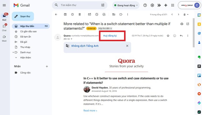 *Sử dụng từ khóa “Unsubscribe” để truy quét thư quảng cáo