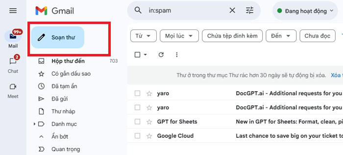 - Tại đây, bộ lọc AI của Google sẽ quét thư để đảm bảo không có mã độc hoặc thư rác.